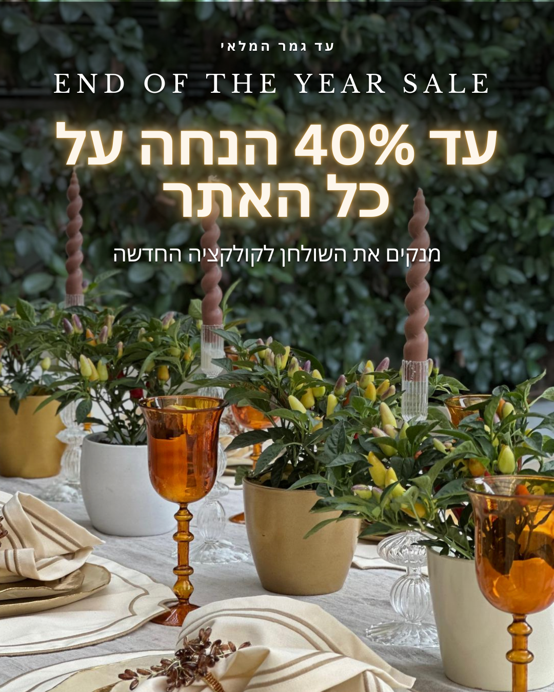הצטרפו לרשימת הדיוור שלי וקבלו עדכונים על מבצעים, קולקציות חדשות וטיפים לאירוח ולעיצוב השולחן.