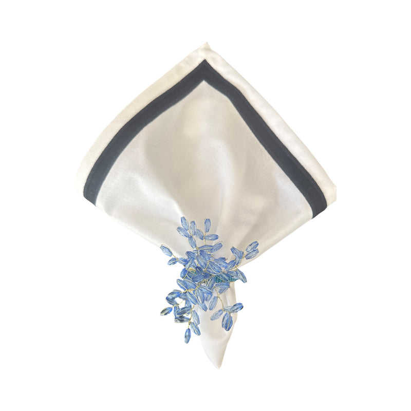 מפית כחולה עם רקמה לבנה - 6 יחידות