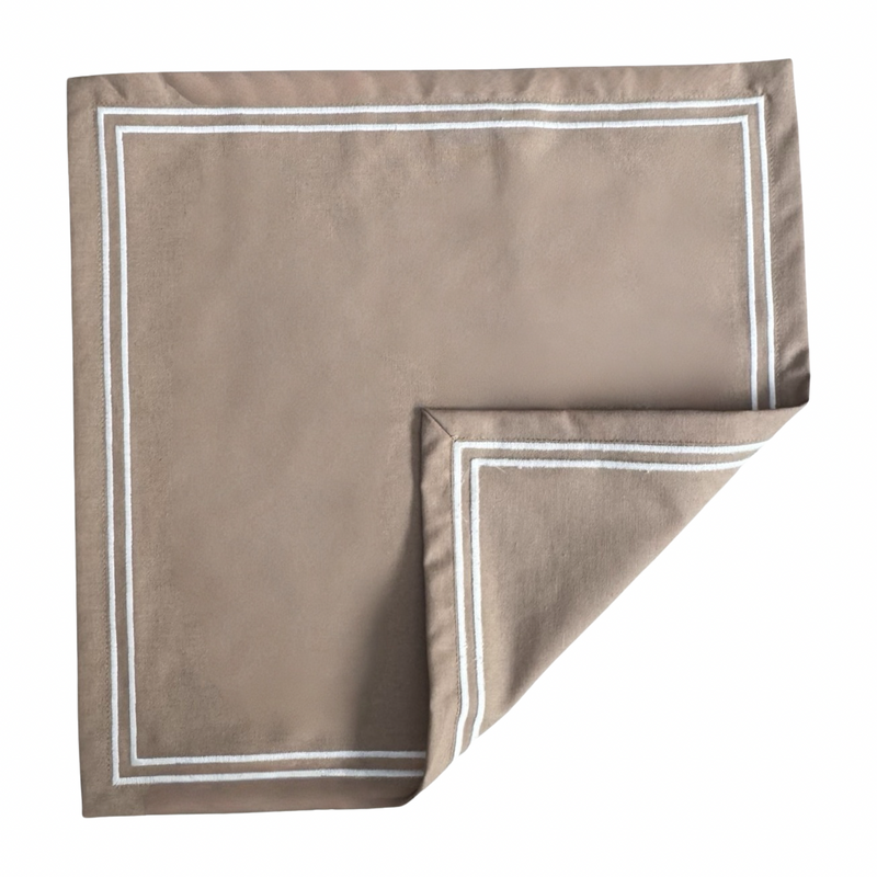 מפית בד בז׳ עם רקמה לבנה - סט של 6